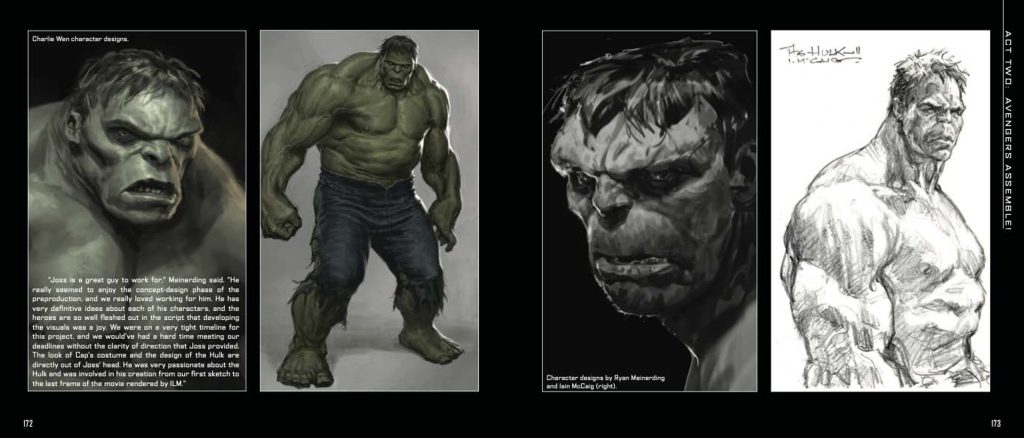 In Act Two – Avengers Assemble – we have details on the main Avengers characters in the movie – Black Widow, Bruce Banner and the Hulk, Captain America, Iron Man, Thor and Loki. Each has production drawings of how their outfits were worn, often combined with production stills to show the final product. There’s also interesting quotes from many of the actors about how they see their characters at this stage.