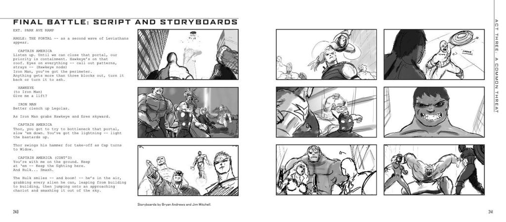 I also liked the storyboard given of the battle scene between Thor and Iron Man in the woods, which you may remember.